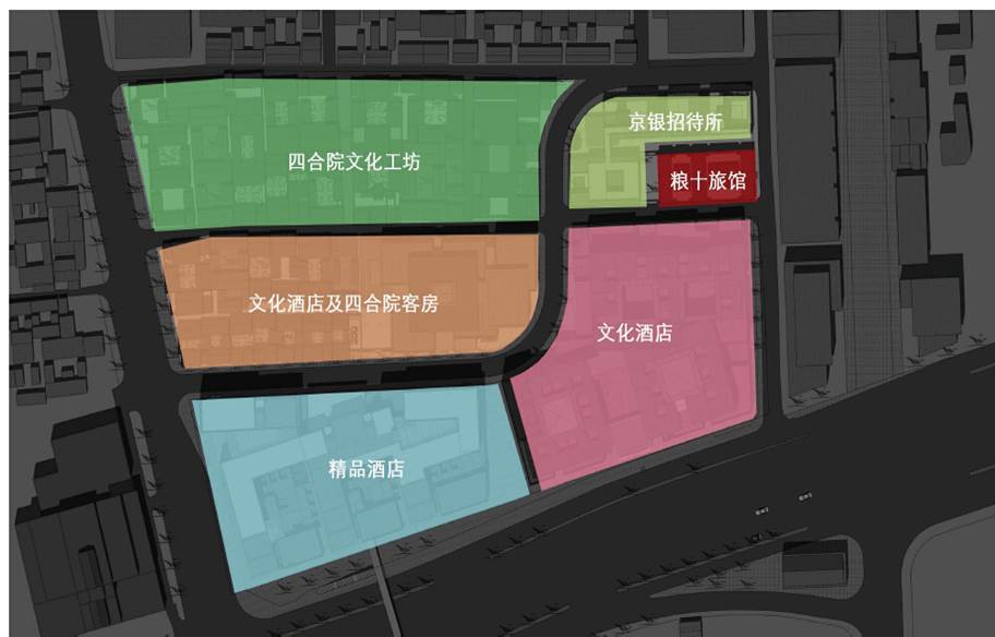 H地塊總體定位為文化旅游服務保障區,以大柵欄地域的歷史、文化、旅游為基礎,依托大柵欄地區豐富的旅游資源,建立多層次酒店群,開發中高級特色酒店。