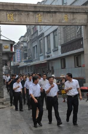 6月27日上午,北京市人大常委會主任杜德印同志來到大柵欄投資公司和大柵欄永興置業(yè)公司的“大柵欄·北京坊”、勸業(yè)場、珠寶市糧食店街、楊梅竹斜街等項目視察,隨后聽取了推進(jìn)大柵欄琉璃廠地區(qū)保護(hù)復(fù)興市人大代表建議辦理工作情況的匯報。市發(fā)改委主任張建東、西城區(qū)領(lǐng)導(dǎo)王寧、王少峰、蘇東、王旭、李巖等同志以及大柵欄琉璃廠建設(shè)指揮部、大柵欄街道和廣安控股主要領(lǐng)導(dǎo)陪同視察。