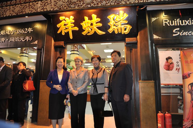 伊琳娜·博科娃參觀了楊梅竹斜街,對大柵欄更新計劃這一模式給予了充分肯定。隨后,伊琳娜·博科娃游覽了大柵欄商業街,她高度評價了古老而繁華的街區、老字號的精良工藝,并進入內聯升和瑞蚨祥參觀。