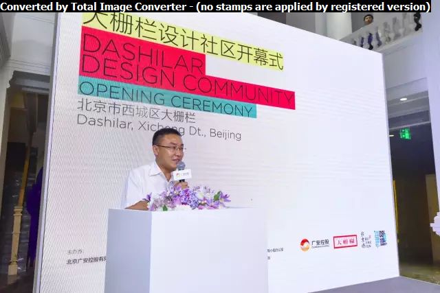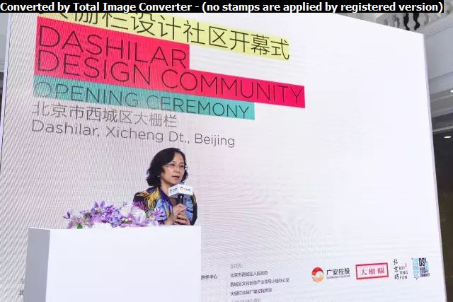 一年一度的國際設計周作為北京最具影響力的大型文化活動之一,今年再一次選擇與大柵欄更新計劃合作,作為設計周主辦方代表,北京歌華文化發展集團副總經理、設計周組委會辦公室副主任陳工女士表達了對大柵欄設計社區過去幾年工作的肯定以及對今年活動的期望與祝愿。
