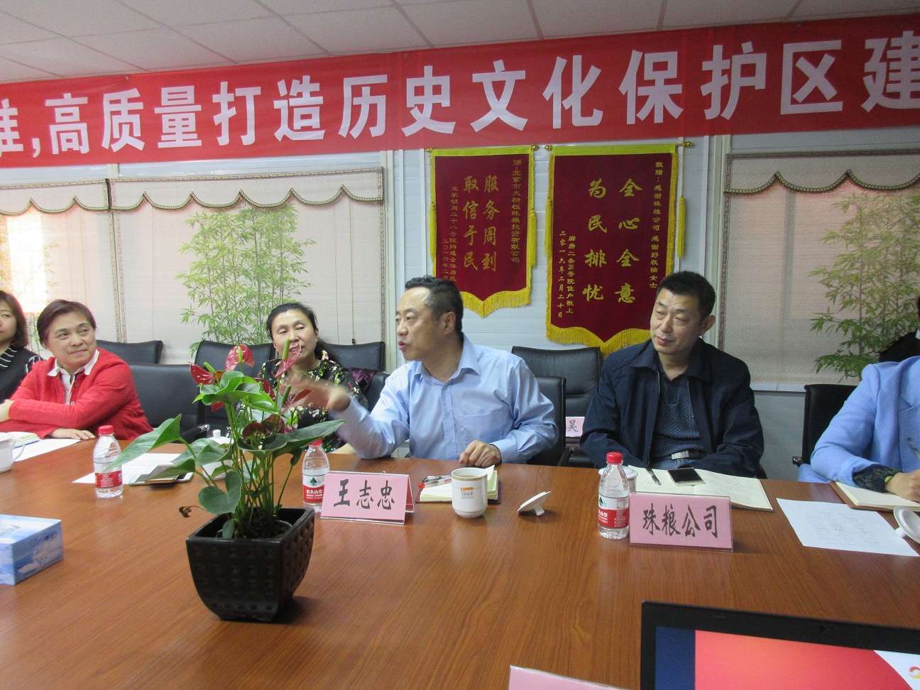 會上,珠糧公司向大家宣講介紹了大柵欄煤東歷史文化名城保護(hù)示范區(qū)項(xiàng)目概況,大家圍繞歷史文化名城保護(hù)的話題展開討論,就改善人居環(huán)境、提升城市品質(zhì);如何發(fā)揮老字號文化聚集區(qū)優(yōu)勢,推進(jìn)業(yè)態(tài)轉(zhuǎn)型升級,適應(yīng)歷史文化街區(qū)功能;如何在區(qū)域共建、共治中保護(hù)和傳承歷史文化名城等多個(gè)角度分析探討,各企業(yè)結(jié)合自身特點(diǎn)等暢談如何做好名城保護(hù)工作。志忠書記在會上向大家介紹了近期大柵欄區(qū)域的發(fā)展規(guī)劃情況,老字號企業(yè)都紛紛表示希望以大柵欄商業(yè)街為核心延伸發(fā)展,提升整個(gè)大柵欄區(qū)域,除了“硬件”的改造,“軟件”也要兼顧提升,保留傳承我們的京味文化。
