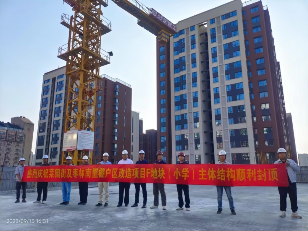 菜園街及棗林南里棚戶區改造項目F地塊(小學)封頂喜報